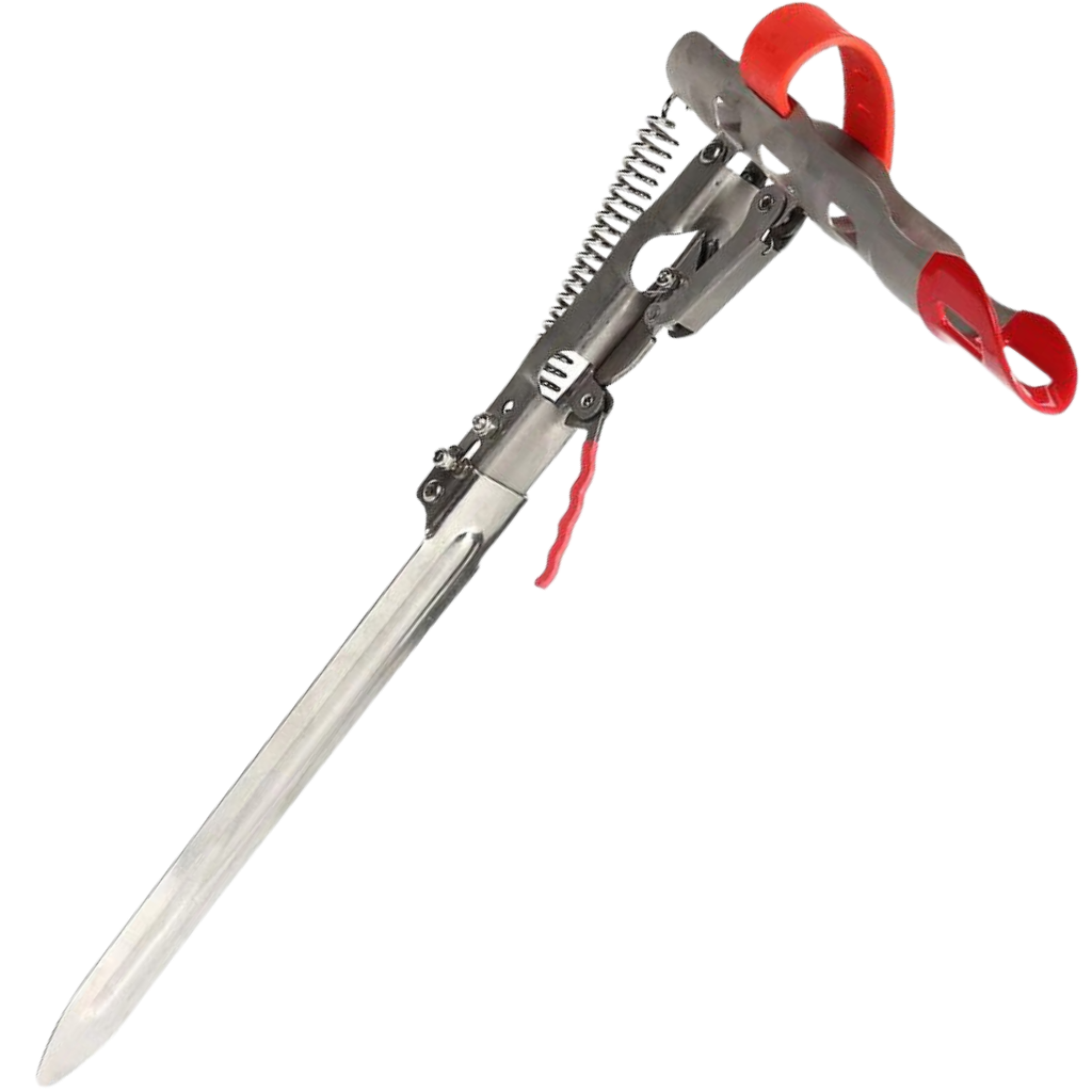 Firmly plant the stake of the fishing rod holder in the ground. Hang your rod on the holder and pass the fishing line through the red hook so you can trigger the rod lifting movement when a fish bites on the hook.