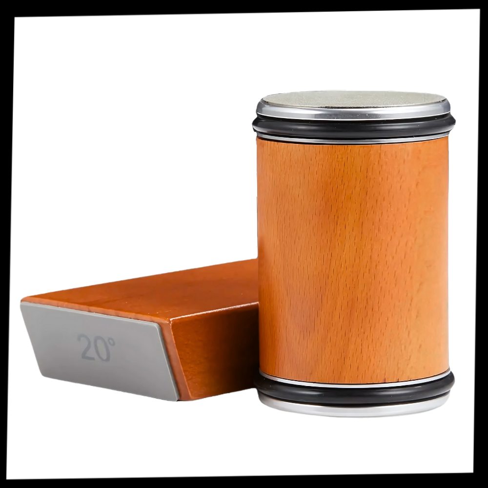 Engineered to withstand the demands of frequent sharpening, the KnifeGlide Precision Sharpener is constructed using a suite of high-performance materials chosen for their strength, precision, and endurance. The body and sharpening frame are crafted from industrial-grade alloy steel, known for its exceptional structural integrity and resistance to deformation, even under repeated pressure. This ensures that the sharpening angles and magnetic alignment remain consistent over time, safeguarding sharpening accuracy. At the heart of its performance is a diamond-coated sharpening disc with a coarse 46 μm grit, designed for aggressive yet controlled material removal. It restores dull blades rapidly, while the opposing stainless steel honing disc polishes and refines the edge to a mirror finish. The solid wood roller grip, not only ergonomic and beautiful, also houses dual ball bearings that maintain long-term rolling stability without wear. Silicone pads and feet provide both anti-slip functionality and base protection, reinforcing control and durability on any surface.