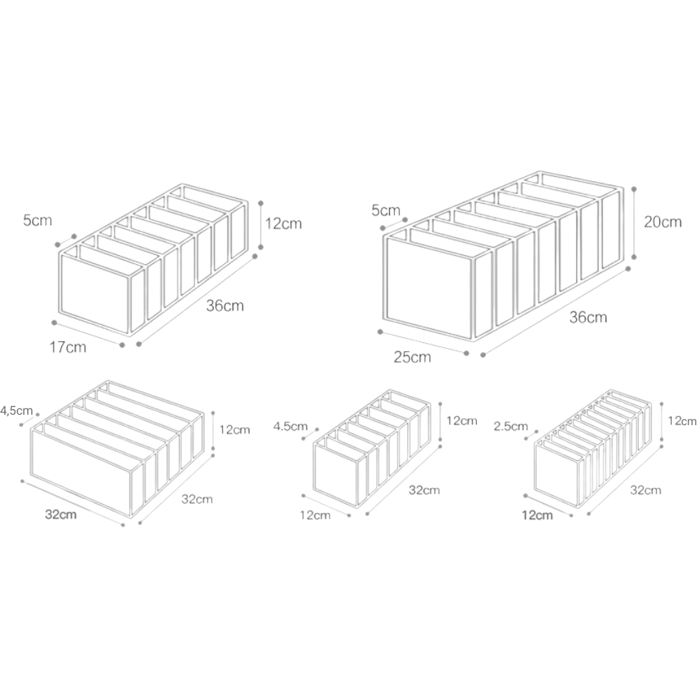 This organizer is an essential tool for your daily use. Occupy multiple compartments and organize spaces in different closets, wardrobes and drawers according to your needs thanks to the great design of this mesh separation box. Choose from five different sizes, including different numbers of grids.